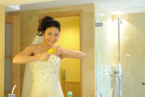 鏡裡的老婆穿透視肚兜粉紅奶罩小丁