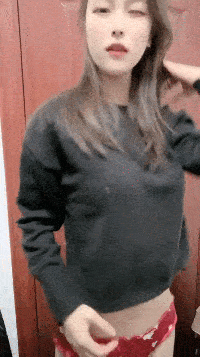 領口寬鬆的毛衣在搭配著阿姨的舉動 雖然有頭髮遮著 但衣服一直往下垂 奶都快掉出來了